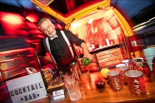 Angeboten werden jetzt zahlreiche verschiedene Drinks in exklusiven Trinkgefäßen direkt aus dem Postauto heraus.
